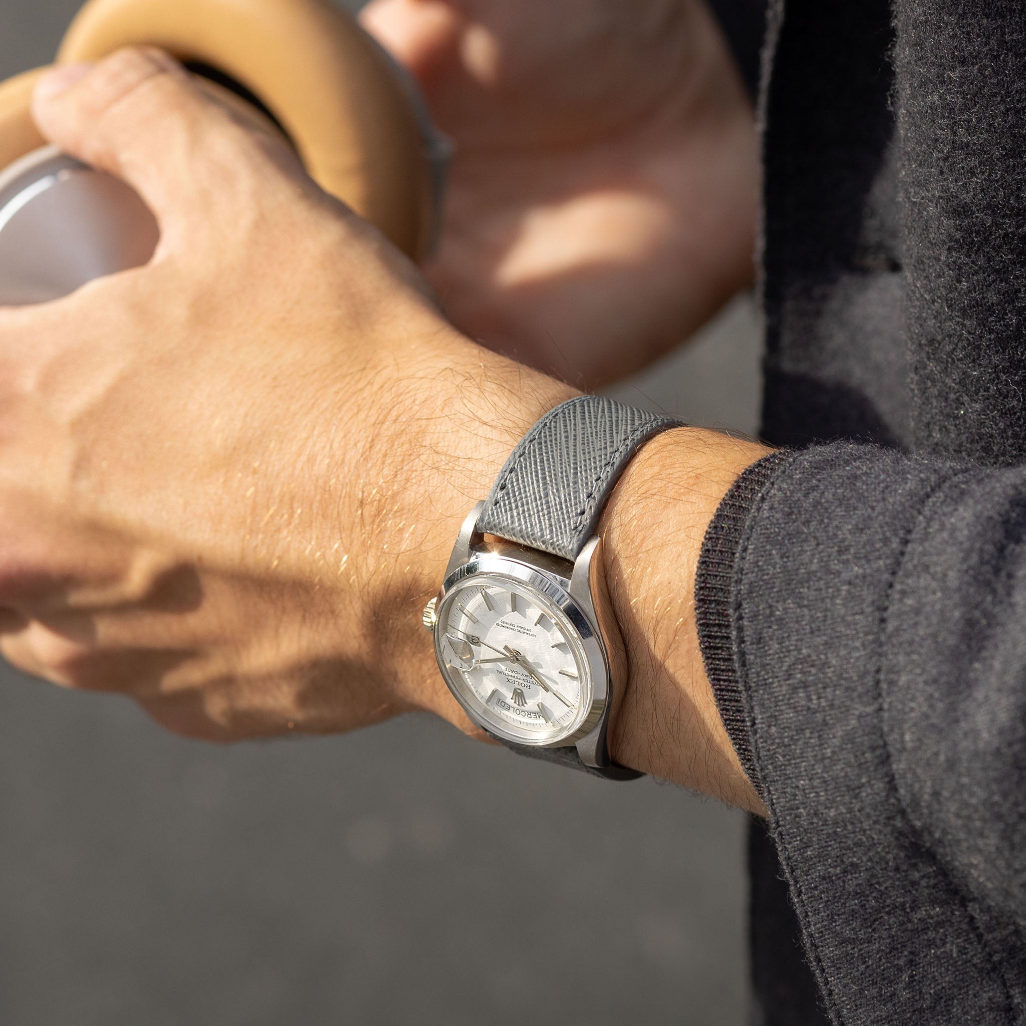 Our leather straps are made of all-natural vegetable tanned leather. There is no chemical coating or waxing on top, which is why they are so very soft and comfortable. This natural quality also causes aging of the leather by sunlight and everyday wear. Every strap gets its own individual patina, which is something we love. Please don’t treat the leather with oil or wax as it ruins the whole nature of the strap. This also comes with a warning: avoid direct contact with water, as it may cause stains. So don’t wear your strap in the shower or when swimming and be cautious of heavy rain or perspiration. We recommend not wearing the strap in the gym.